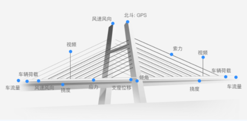 橋梁監測主要通過對 BIM 與 GIS、物聯網、無線終端技術、大數據等進行有機的融合,實現橋梁結構感知實時化、在線預警及時性、結構評估有效性、巡養流程規范化、 技術狀況評估自動化、病害分析智能化等功能。